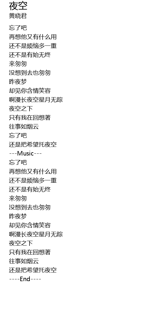 | [01:03.28] | 夜空之下 |