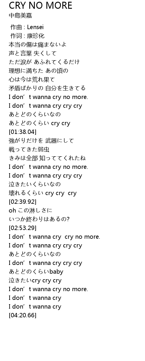 | [04:01.29] | I don' t wanna cry |