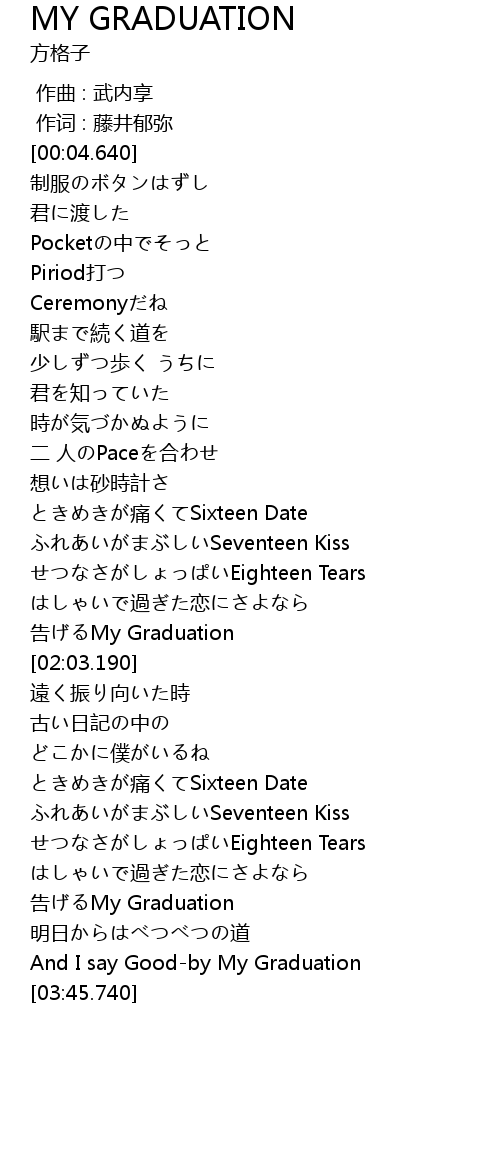 | [03:08.150] | せつなさがしょっぱいEighteen Tears |