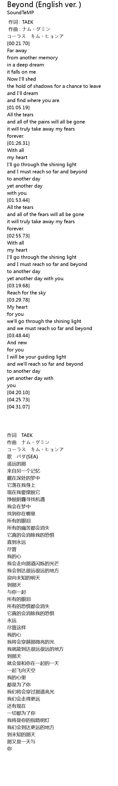 | [00:00.000] | 作词 : TAEK |