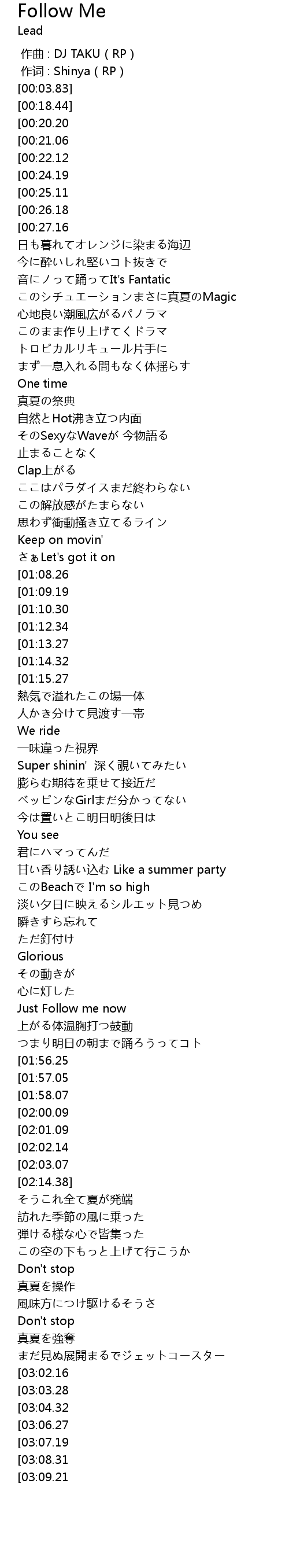 | [03:14.29][03:06.27][02:58.20][02:50.26] | Follow me |