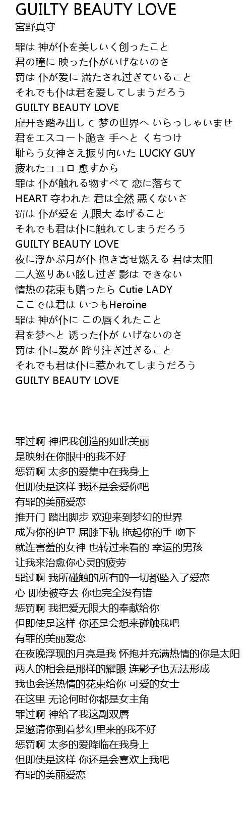 | [00:42.87] | GUILTY BEAUTY LOVE |