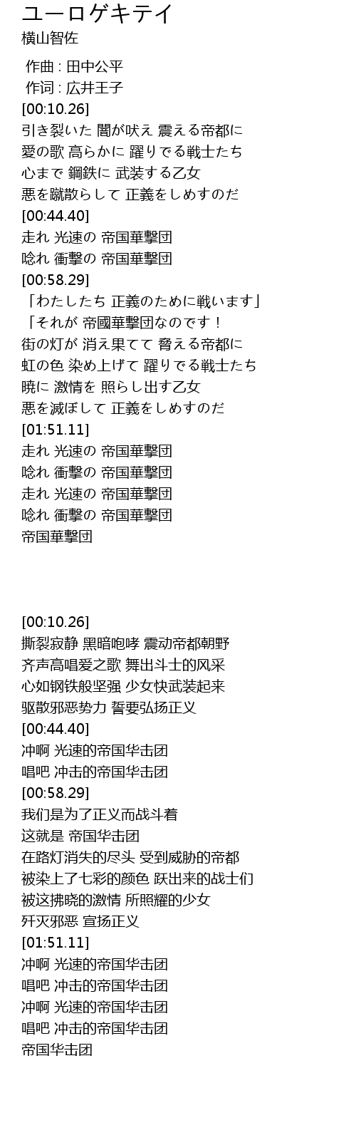 | [01:58.22] | 唸れ 衝撃の 帝国華撃団 |
