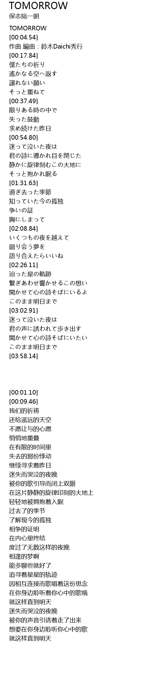 | [00:01.10] | TOMORROW |