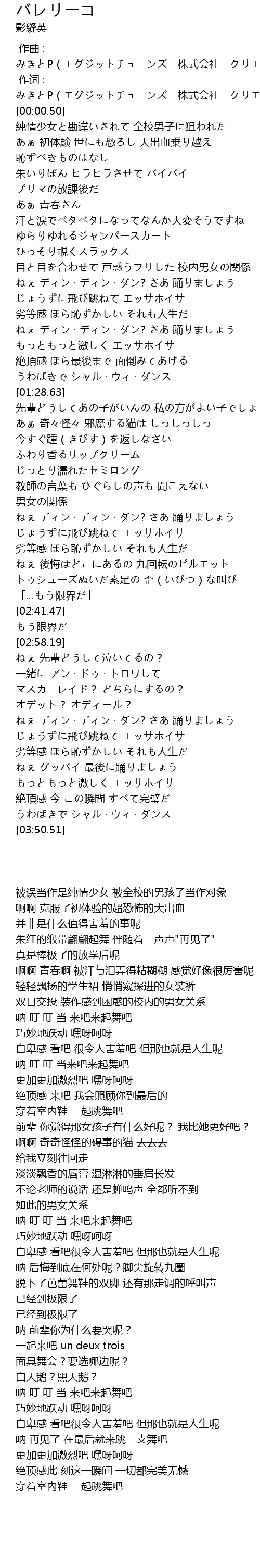 | [00:00.016] | 作词 : みきとP(エグジットチューンズ 株式会社 クリエイター支援事業部) |