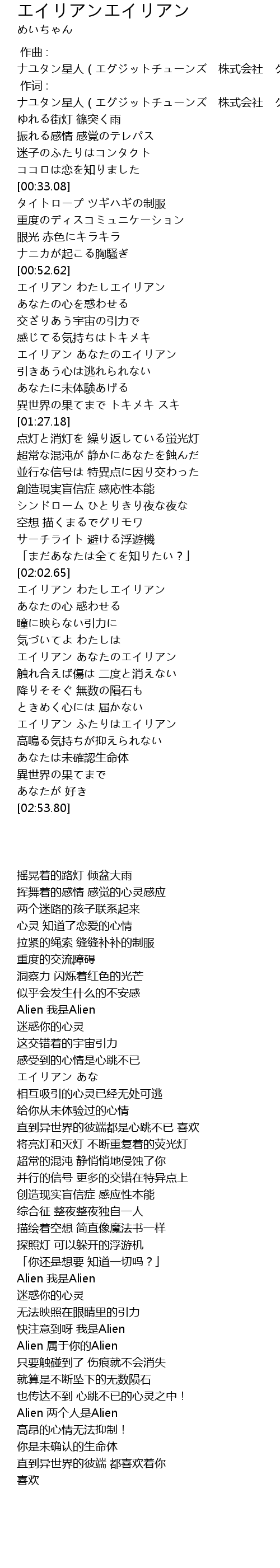 | [02:31.69] | エイリアン ふたりはエイリアン |