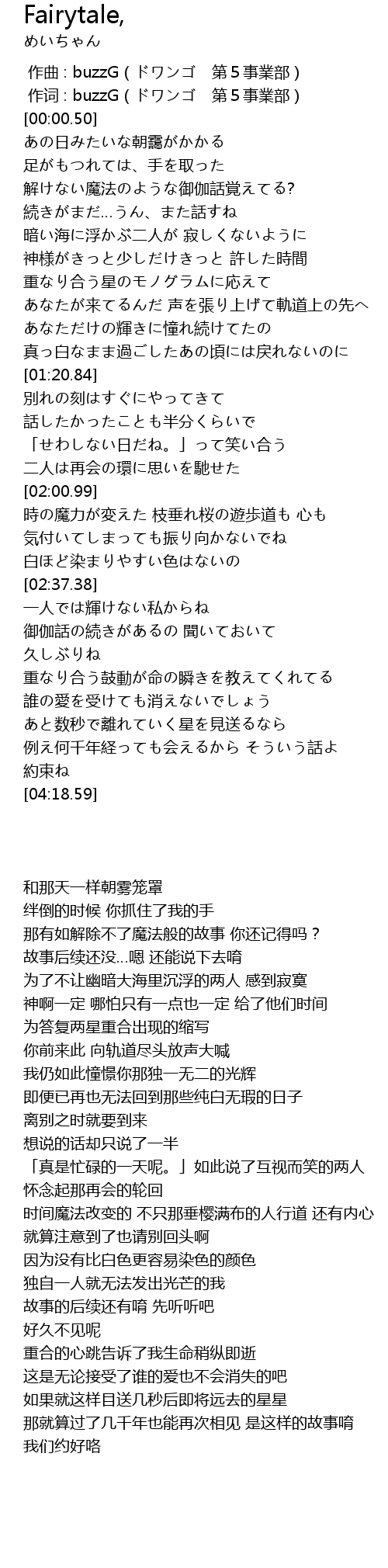 | [00:10.47] | 解けない魔法のような御伽話覚えてる? |