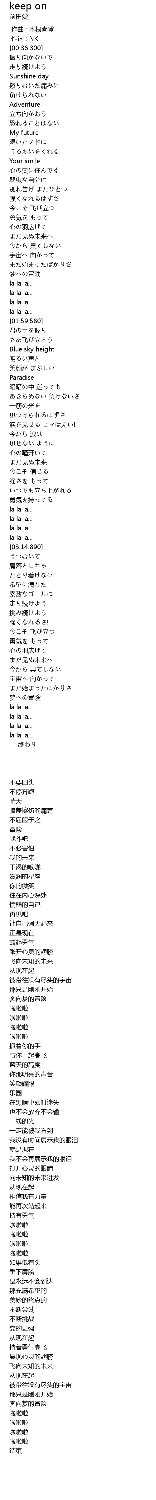 | [02:17.680] | あきらめない 负けないさ |