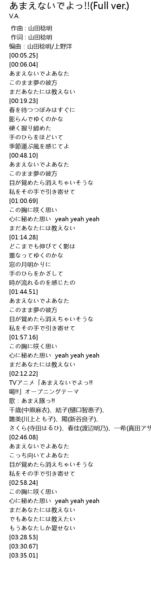 | [02:19.58] | 歌:あまえ隊っ!! |