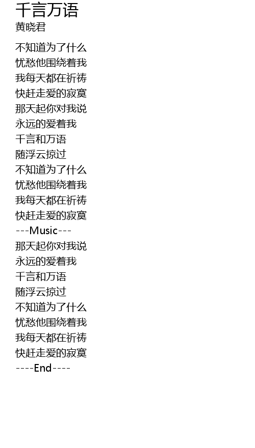 | [02:18.22] | qiān yán hé wàn yǔ |