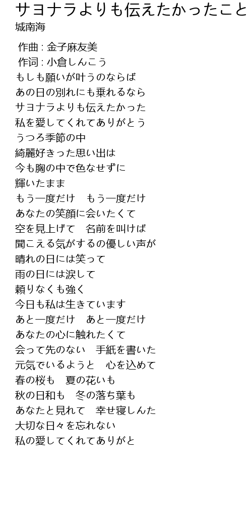 | [00:44.99] | サヨナラよりも伝えたかった |