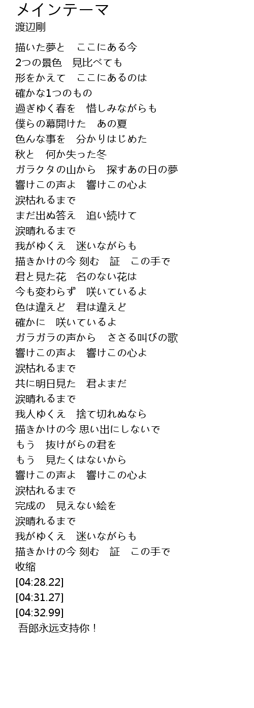 | [04:11.04] | 描きかけの今 刻む 証 この手で |