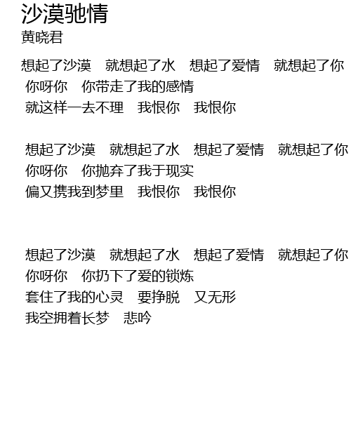 | xiǎng qǐ le shā mò jiù xiǎng qǐ le shuǐ xiǎng qǐ le ài qíng jiù xiǎng qǐ le nǐ | |