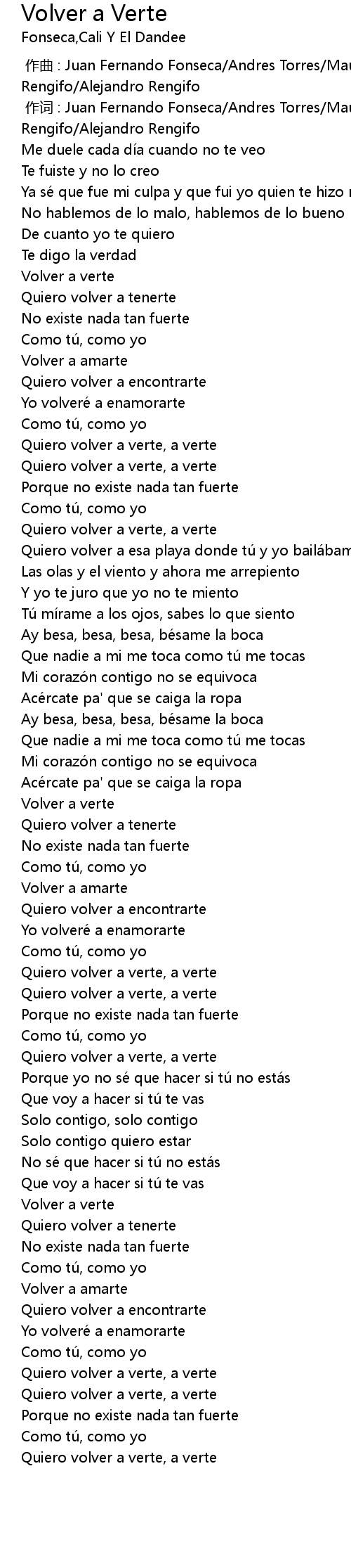 | [00:00.000] | zuò qǔ : Juan Fernando Fonseca Andres Torres Mauricio Rengifo Alejandro Rengifo |