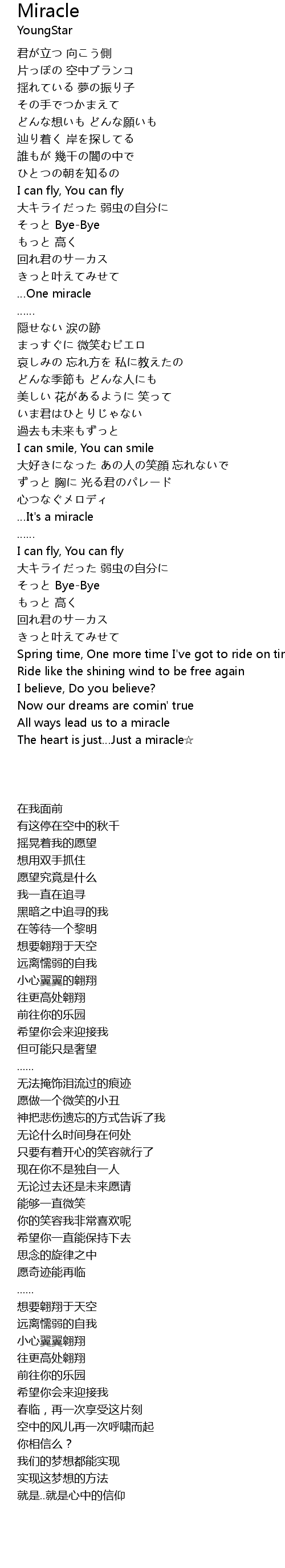| [04:48.57] | The heart is just…Just a miracle☆ |