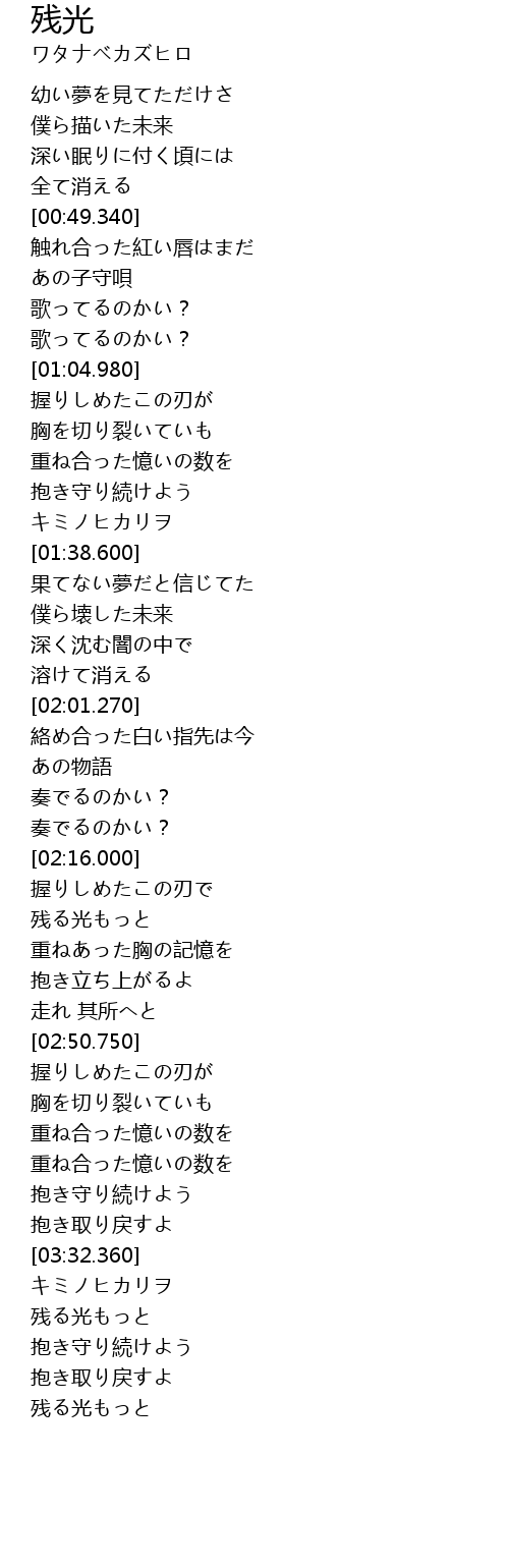 | [00:50.460] | 触れ合った紅い唇はまだ |