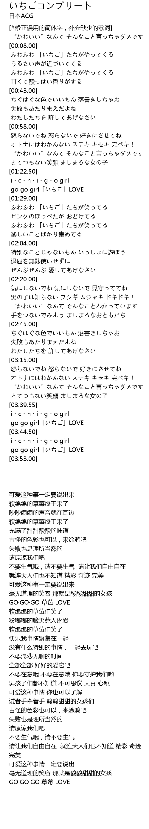 | [00:32.58] | ふわふわ 「いちご」たちがやってくる |