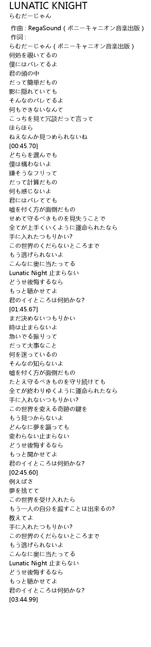 | [03:30.16] | Lunatic Night 止まらない |