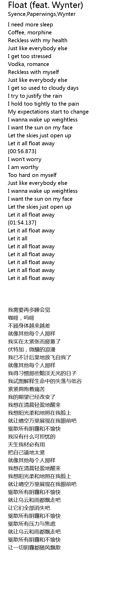 I wanna wake up weightless |