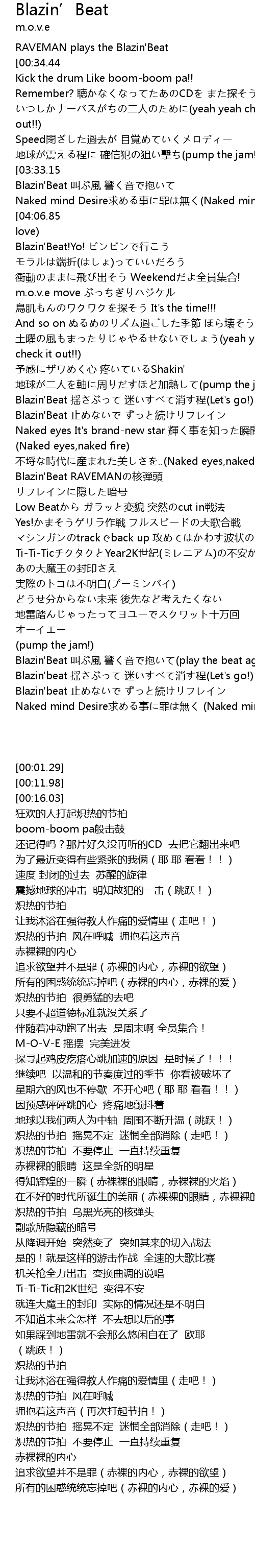 | [02:51.89] | Blazin' Beat RAVEMAN hé dàn tóu |
