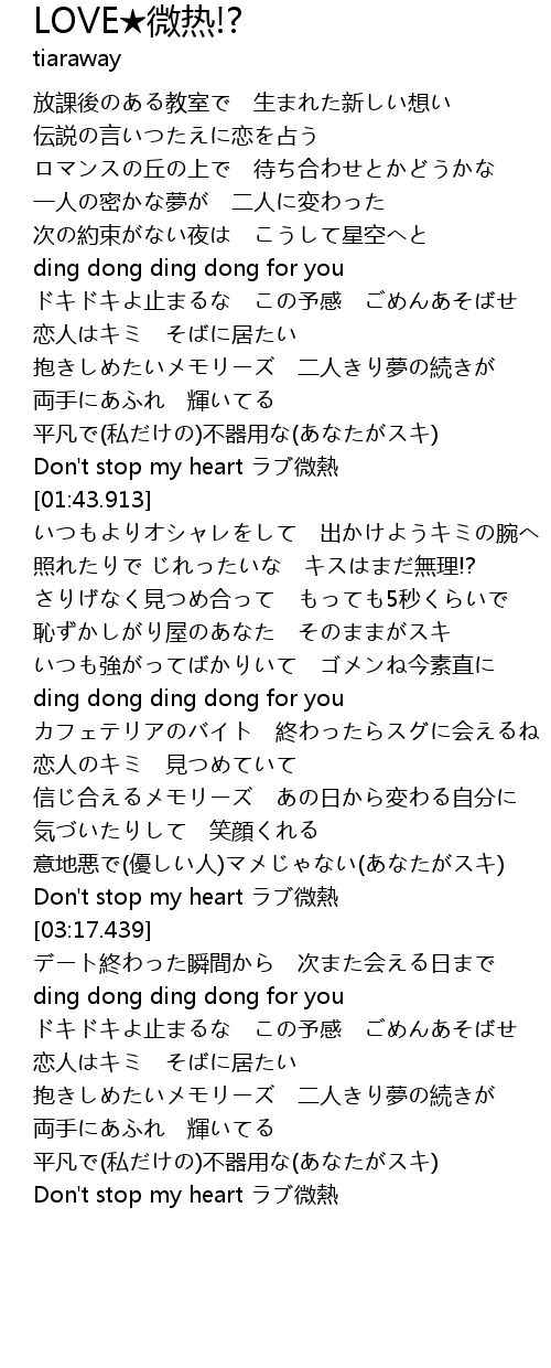 | [01:36.168] | Don't stop my heart ラブ微熱 |