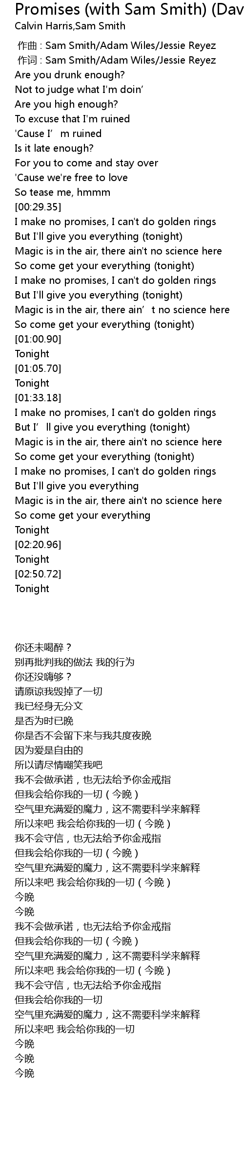 | [00:00.000] | zuò qǔ : Sam Smith Adam Wiles Jessie Reyez |