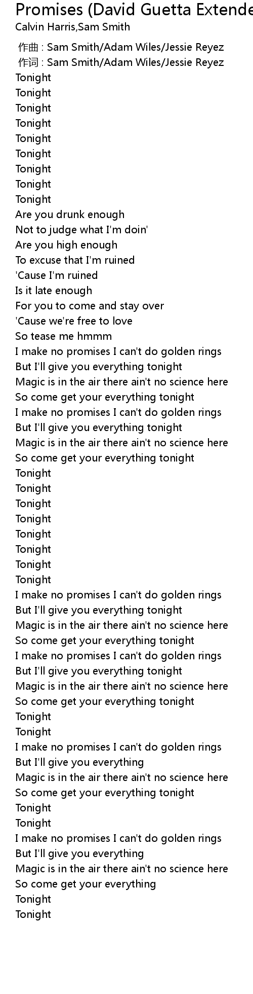 | [00:01.000] | 作词 : Sam Smith/Adam Wiles/Jessie Reyez |