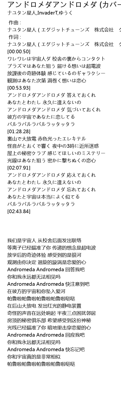 | [02:15.32] | アンドロメダアンドロメダ 応えておくれ |