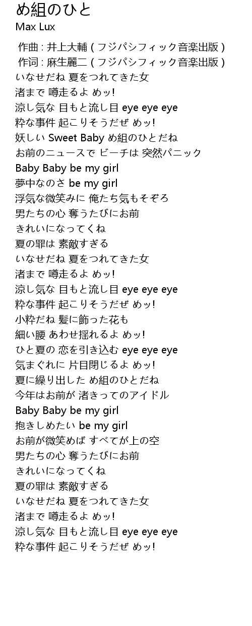 | [02:05.689] | ひと夏の 恋を引き込む eye eye eye |