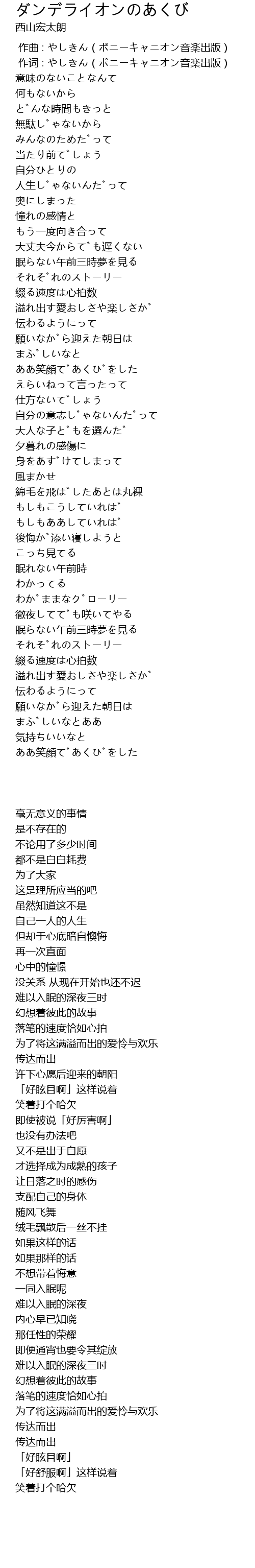 | Song | ダンデライオンのあくび |