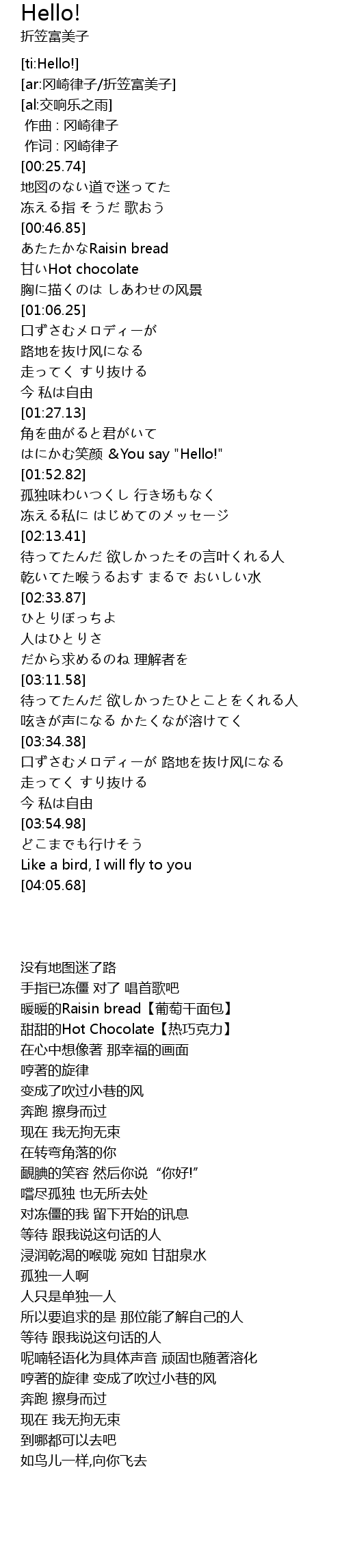 | [01:44.77] | はにかむ笑颜 &You say "Hello!" |