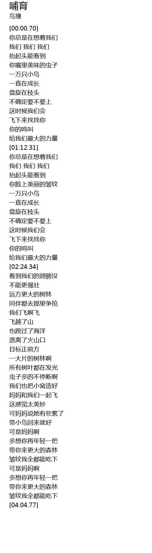 | [00:45.41] | yī wàn zhǐ xiǎo niǎo |
