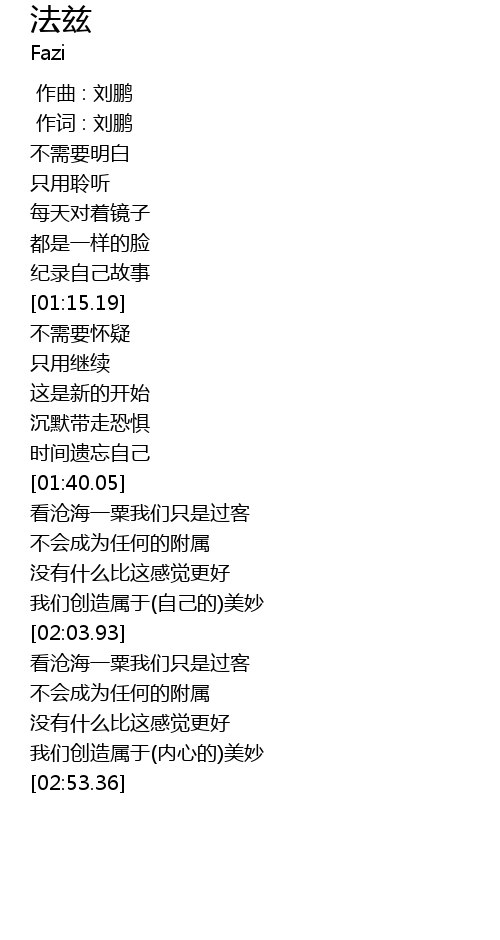 | [00:01.000] | 作词 : 刘鹏 |