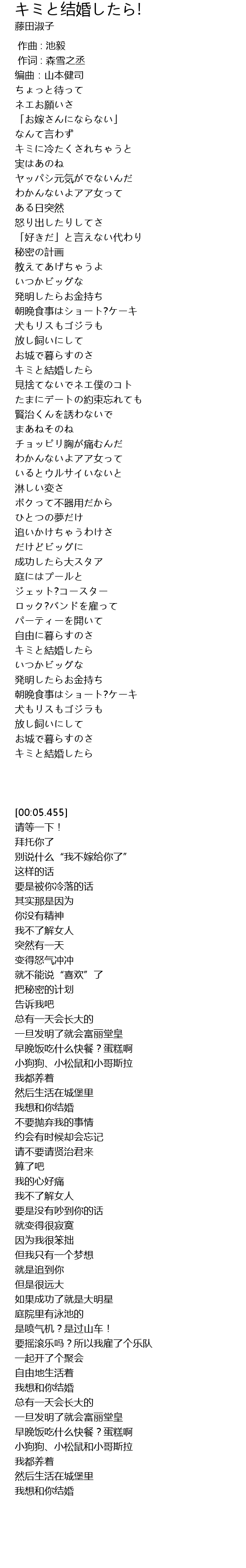 | [02:48.377] | キミと結婚したら |