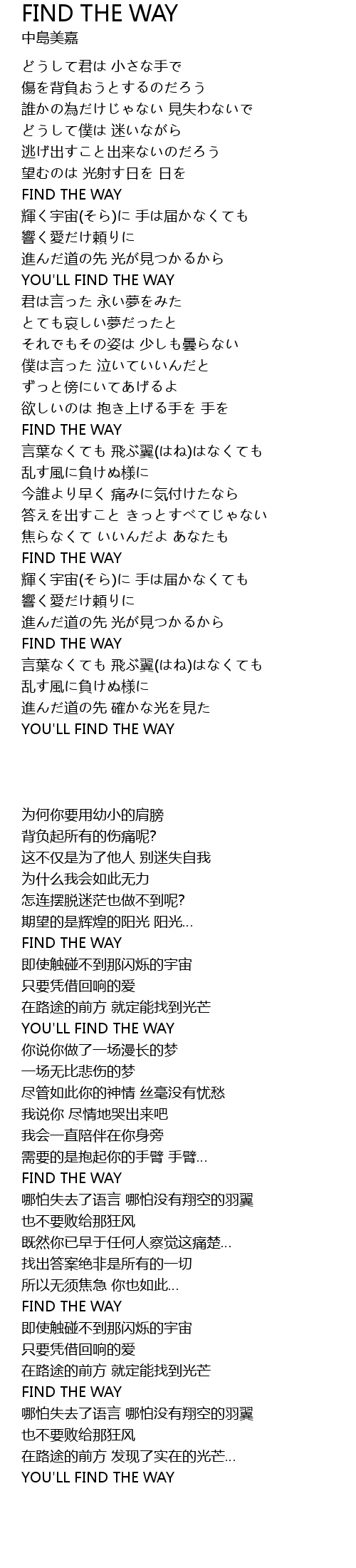 | [01:53.000] | YOU'LL FIND THE WAY |
