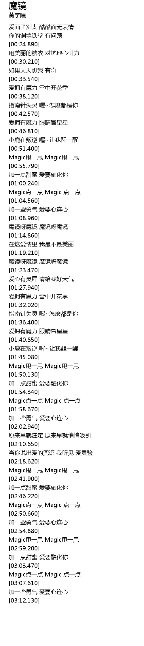 | [03:04.470] | Magic diǎn yì diǎn Magic diǎn yì diǎn |