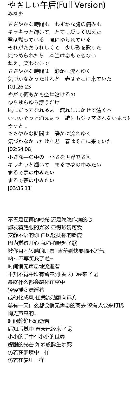 | [00:20.97] | ささやかな時間も わずかな胸の痛みも |