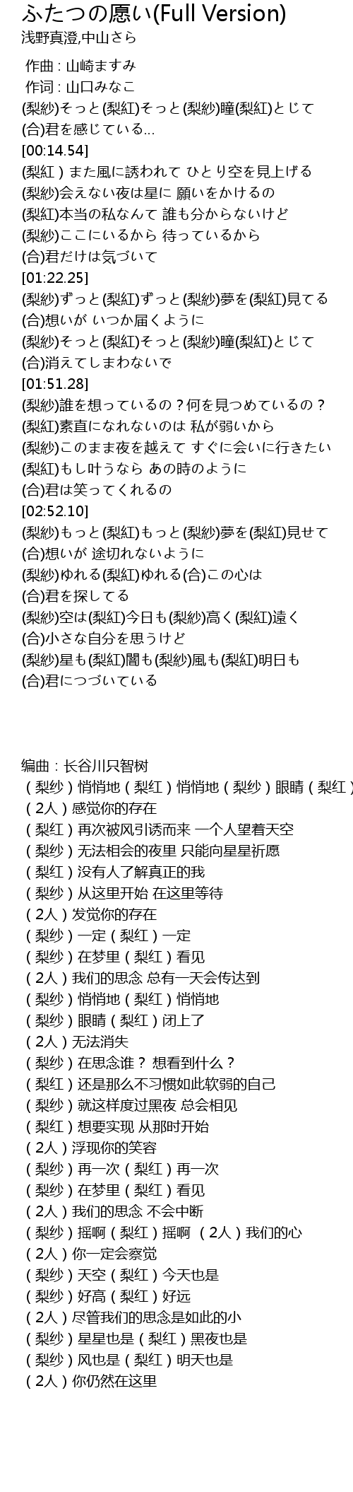 | [03:45.99] | (梨紗)星も(梨紅)闇も(梨紗)風も(梨紅)明日も |