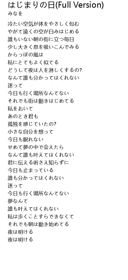 | Song | はじまりの日(Full Version) |