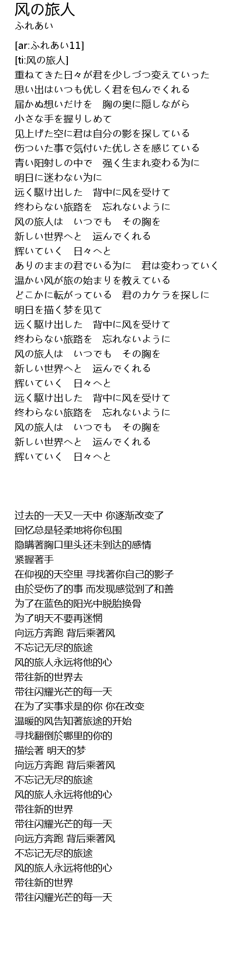 | [02:41.69] | 风の旅人は いつでも その胸を |