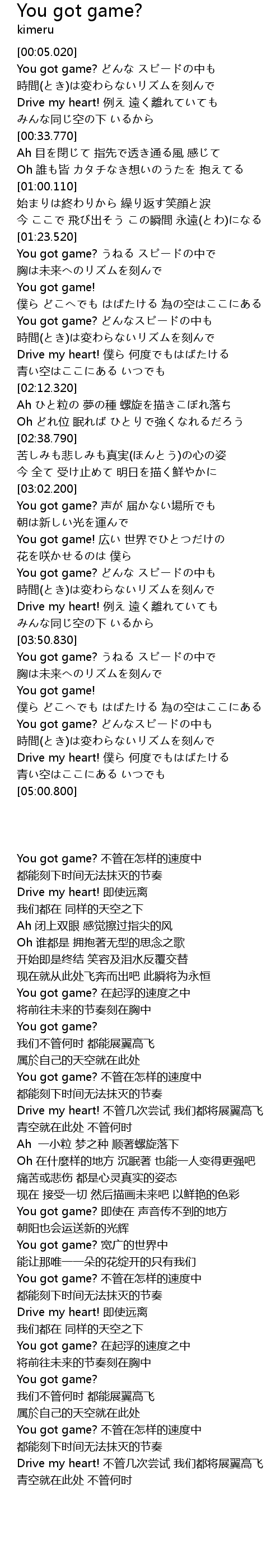 | [03:02.570] | You got game? 声が 届かない場所でも |