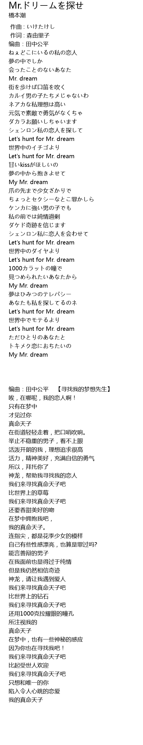 | [02:48.297] | Let' s hunt for Mr. dream |