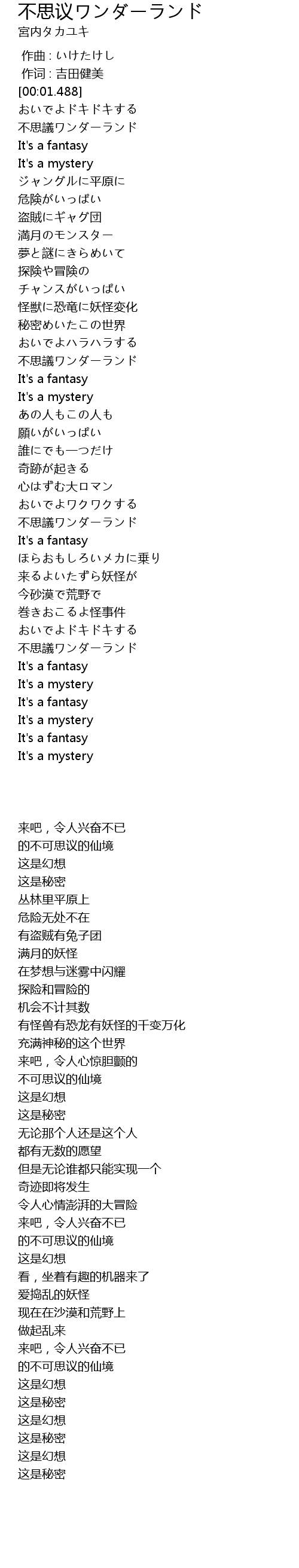 | [01:01.632] | 怪獣に恐竜に妖怪変化 |