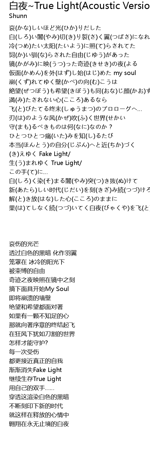 | [03:45.410] | 白(しろ)く染(そ)まる闇(やみ)突(つ)き抜(ぬ)けて |