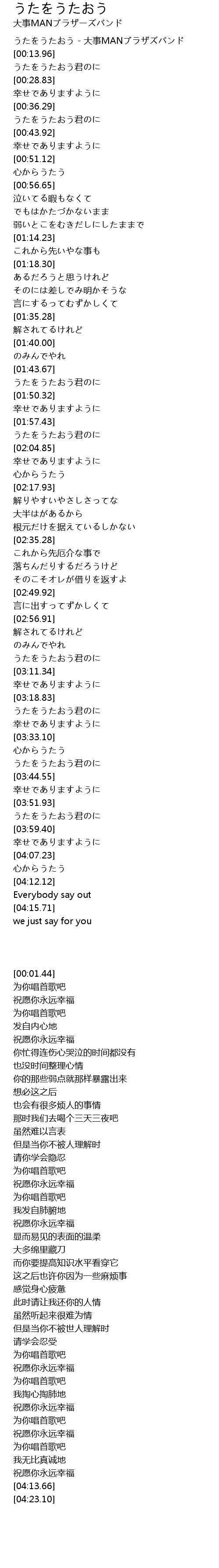 うたをうたおう - 大事MANブラザズバンド |