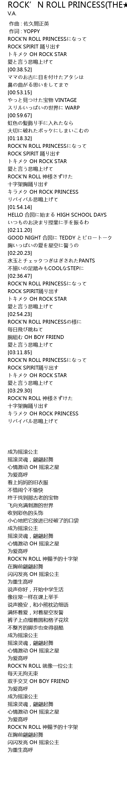 | [02:54.75] | ROCK' N ROLL PRINCESS yang |