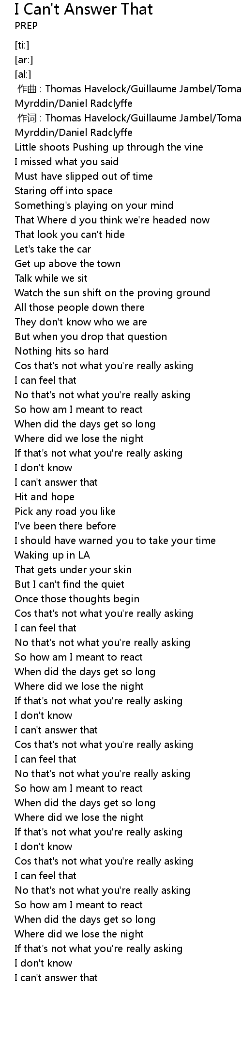 | [03:13.48] | Cos that' s not what you' re really asking |