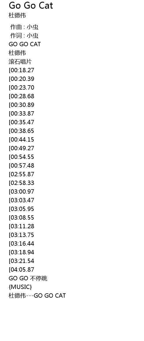 | [04:08.93] | 杜德伟---GO GO CAT |