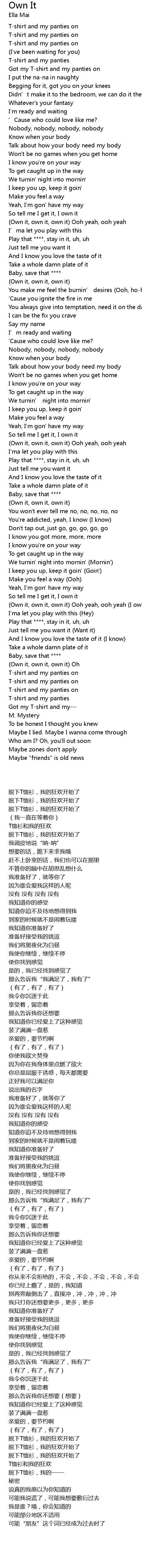 | [02:18.53] | Own it, own it, own it Ooh yeah, ooh yeah |