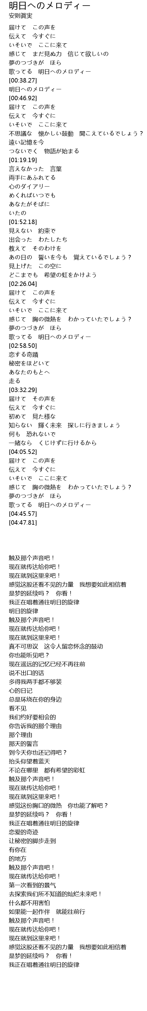 | [00:38.98] | 明日へのメロディー |
